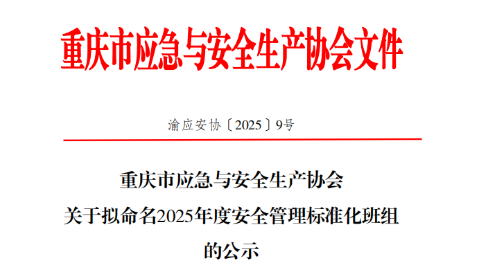 - 重庆市应急与安全生产协会关于命名2025... 2025-12-31
